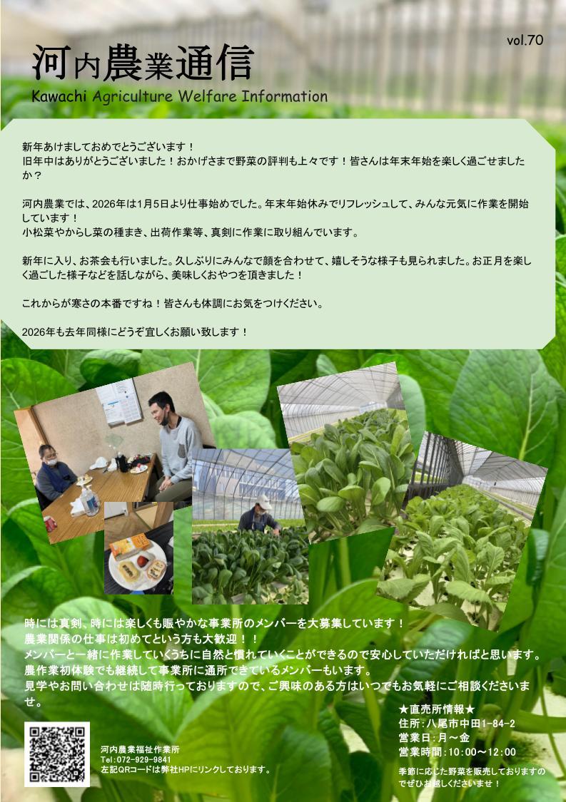 河農通信Vol.70を発行致しました! 通信もついに70号に… 2026年も頑張りますので、今年もどうぞよろしくお願い致します。 |